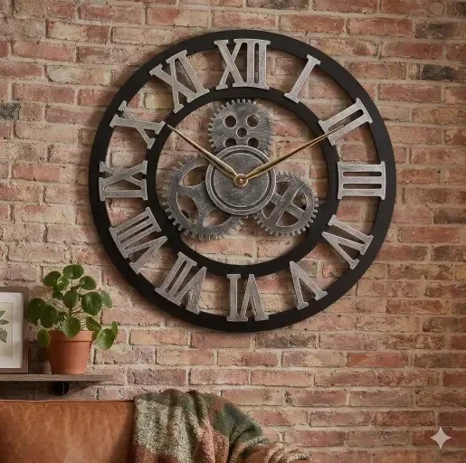 Houten Industriële Wandklok 40cm - Uniek Handwerk